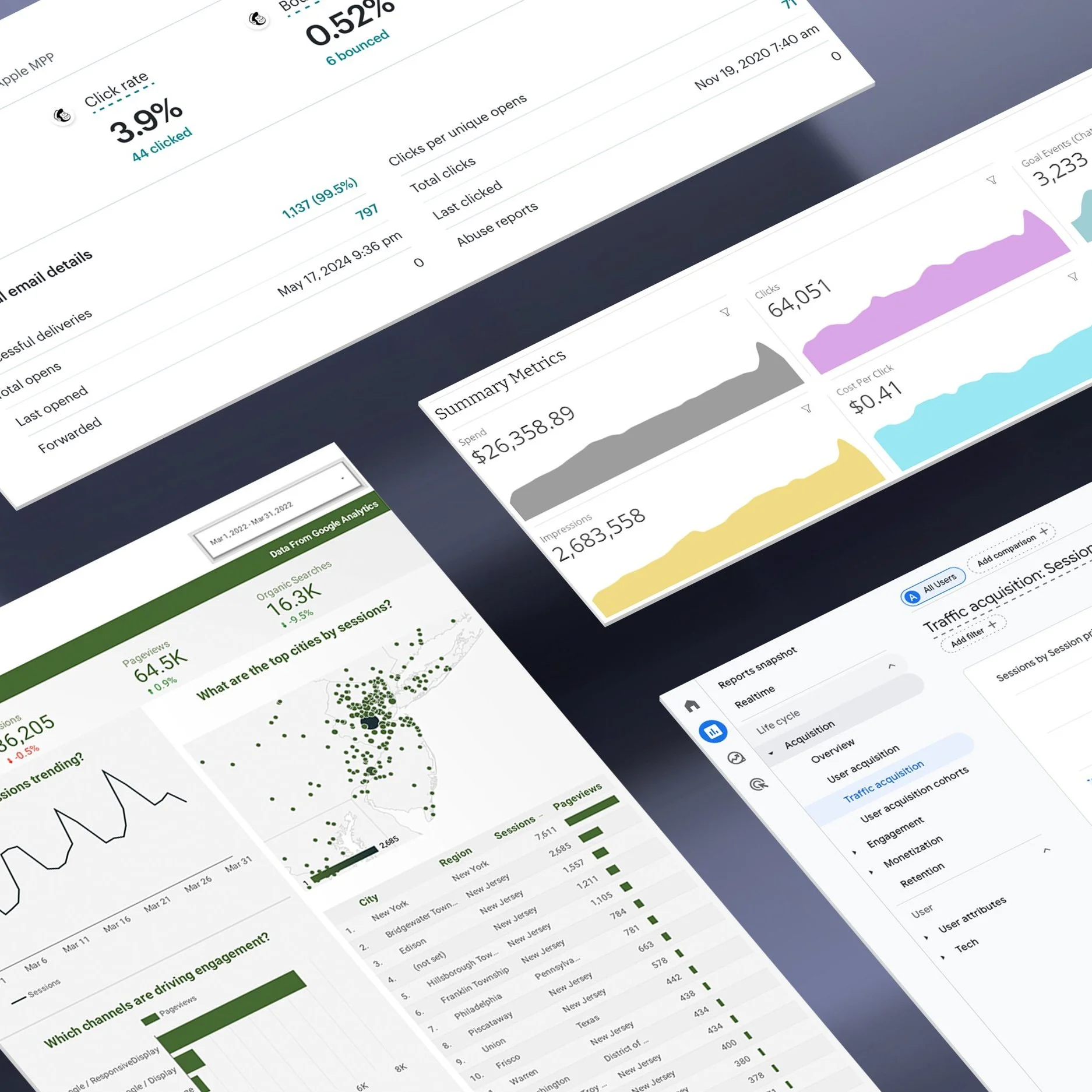 Analytics from marketing efforts and other platforms turn data into actionable strategy. With analytics, marketing performance can be tracked and campaigns and budget can be optimized.