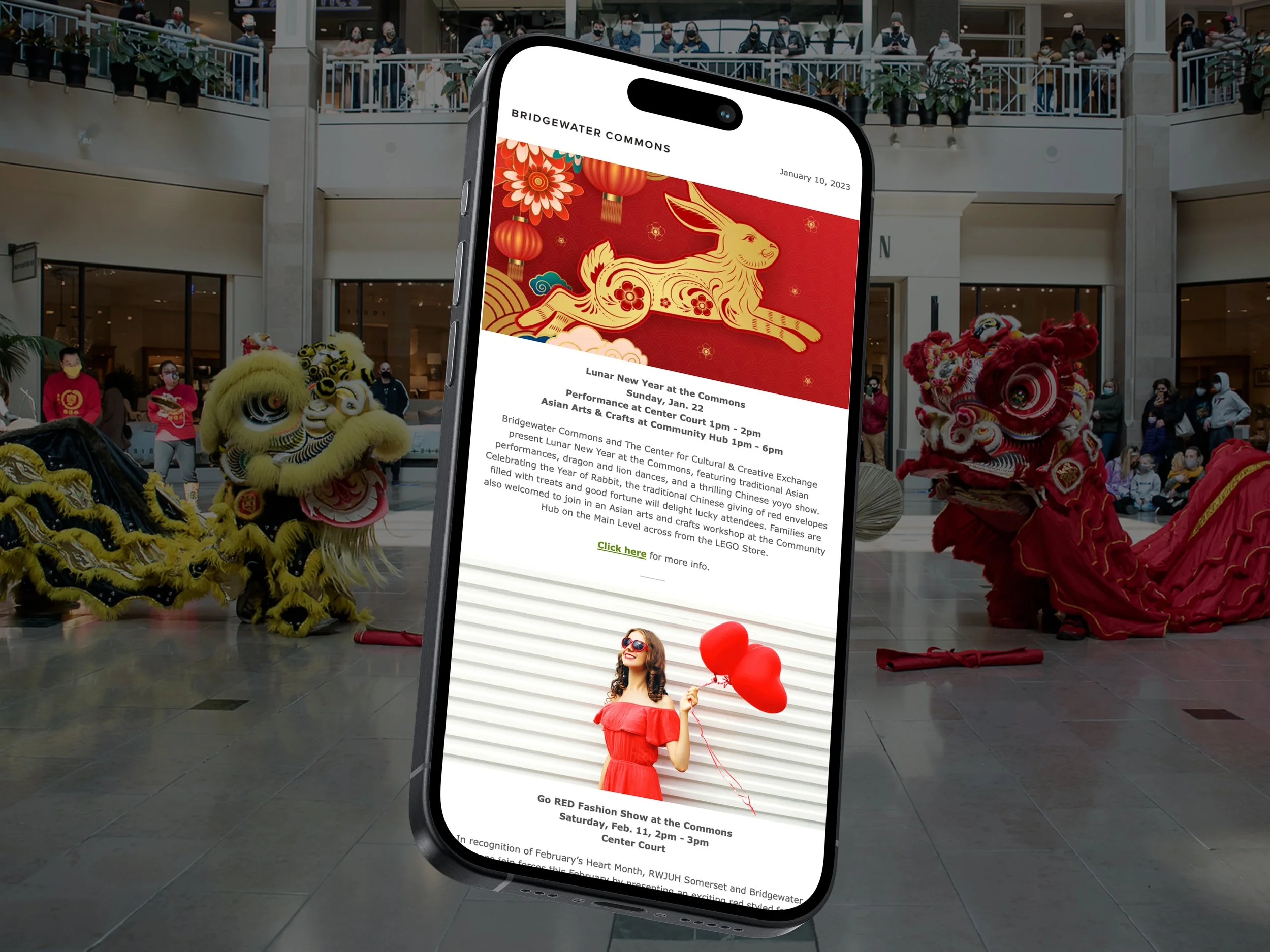 Email content was developed with the on-site team and agency, with a focus on mall events and new store/restaurant announcements.